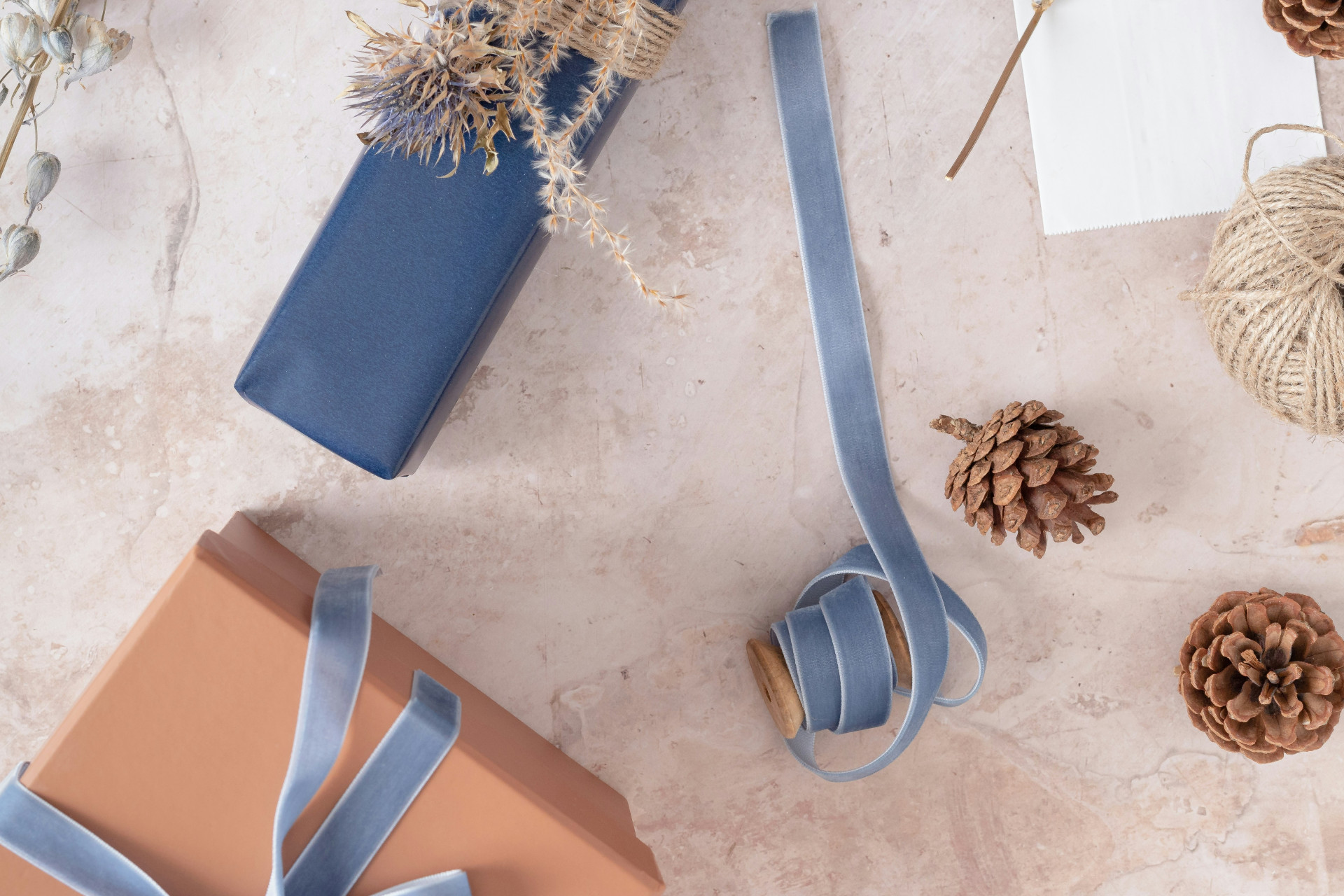 Papirbånd er et miljøvenligt valg og fås både i glatte og krøllede varianter. De er nemme at forme og kan give et rustikt eller håndlavet præg til gaver og dekorationer.